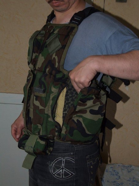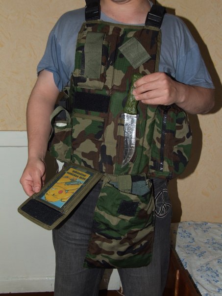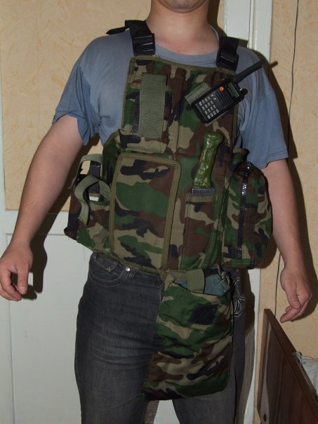 разгруз самодел от Гоблина: спереди универсальный карман, петля под рацию, админка, ножны, подсумок под сброс справа: карман под 2 м4 или 1 7,62 магазин, карман под 3 м4 или 2 под 7,62 магазина. слева: грузовой на молнии. на спине рюкзак на 3х утяжках